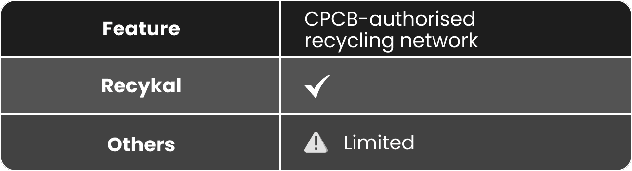 We onboard and verify every waste processor and recycler to ensure CPCB compliance, so you can work with trusted partners and focus on action.