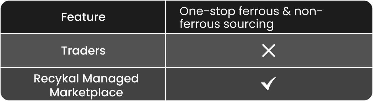 Recykal’s managed marketplace helps SMEs and OEMs source GST-compliant ferrous and non-ferrous scrap from verified sellers across India.