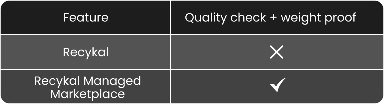 Unlike informal traders or online directories, this is a managed platform offering verified compliance, tracking, quality proof, and consistent supply.