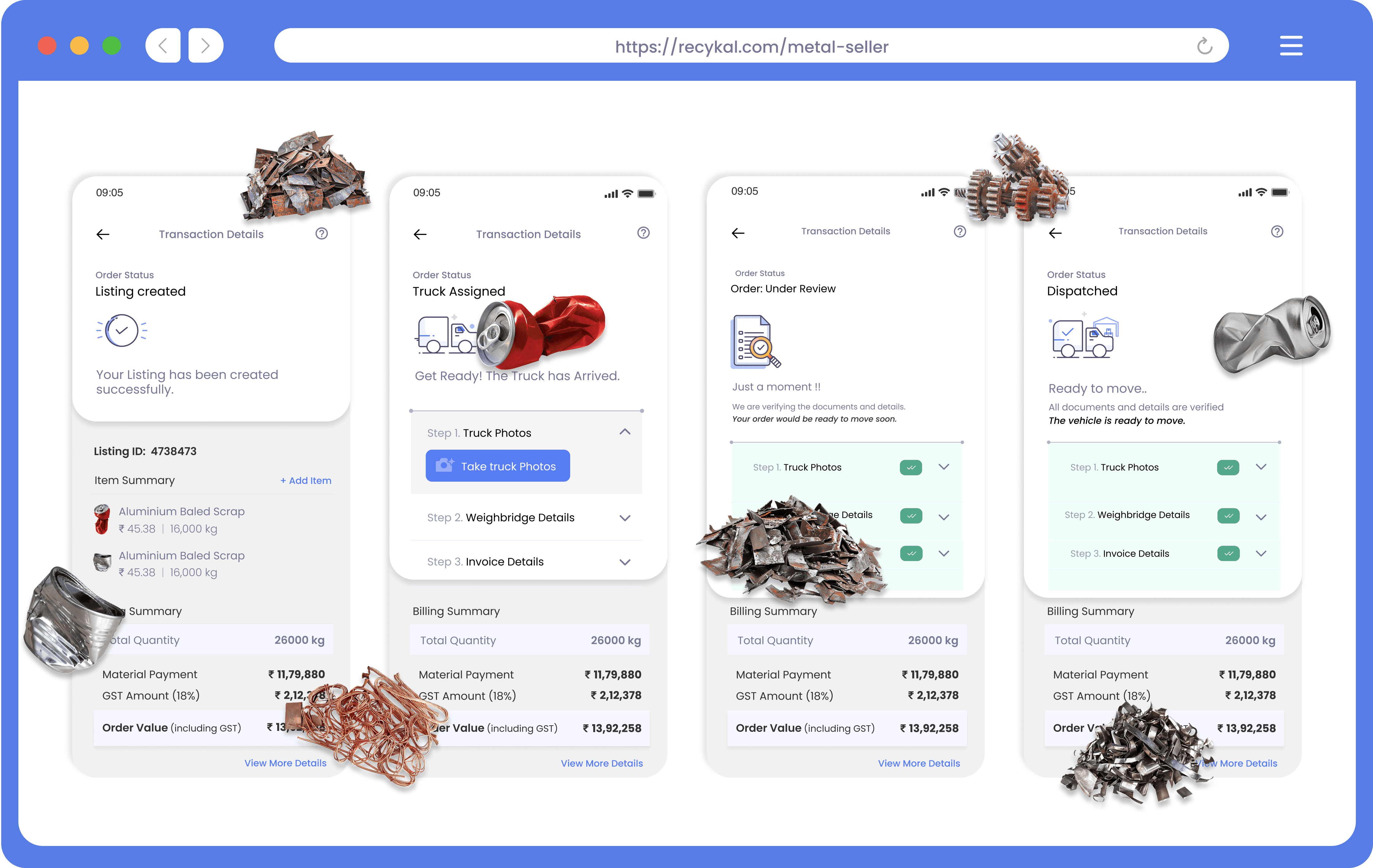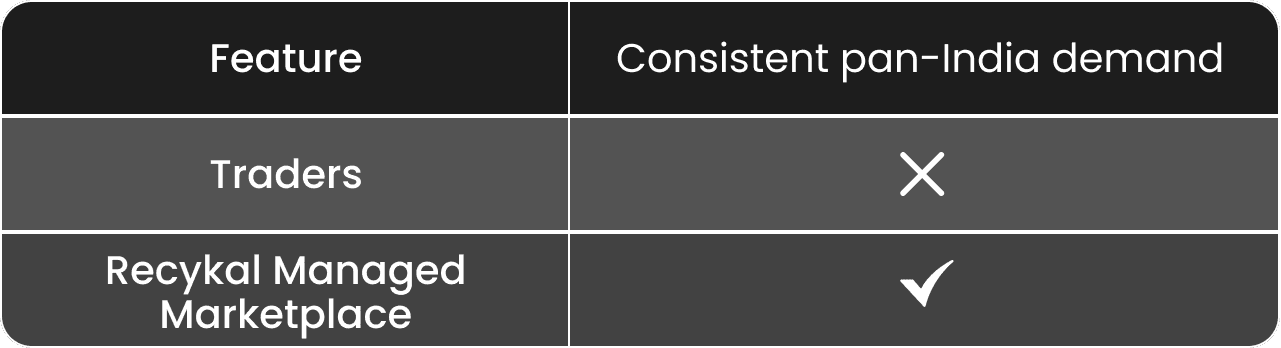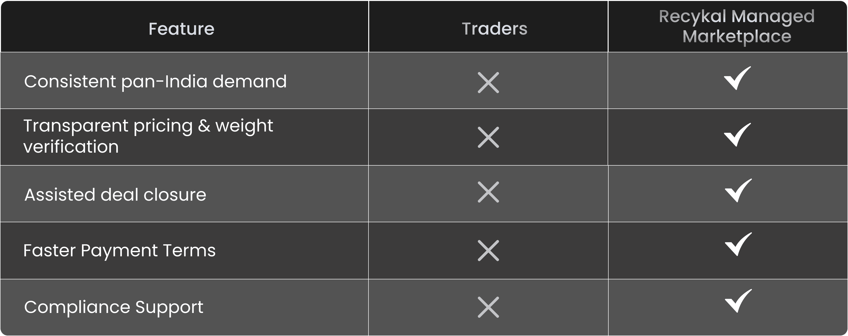 Recykal’s managed marketplace helps metal sellers move ferrous and non-ferrous via a pan-India buyer network with assisted deal closures, faster payment cycles & logistics coordination.