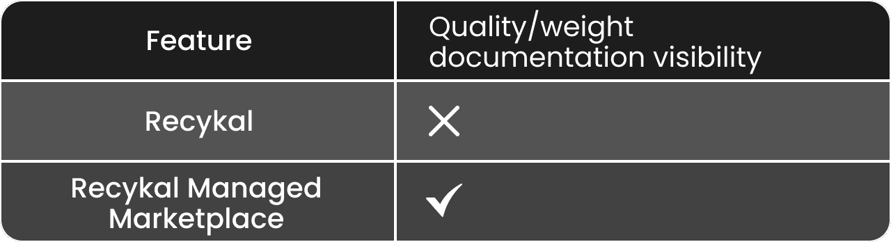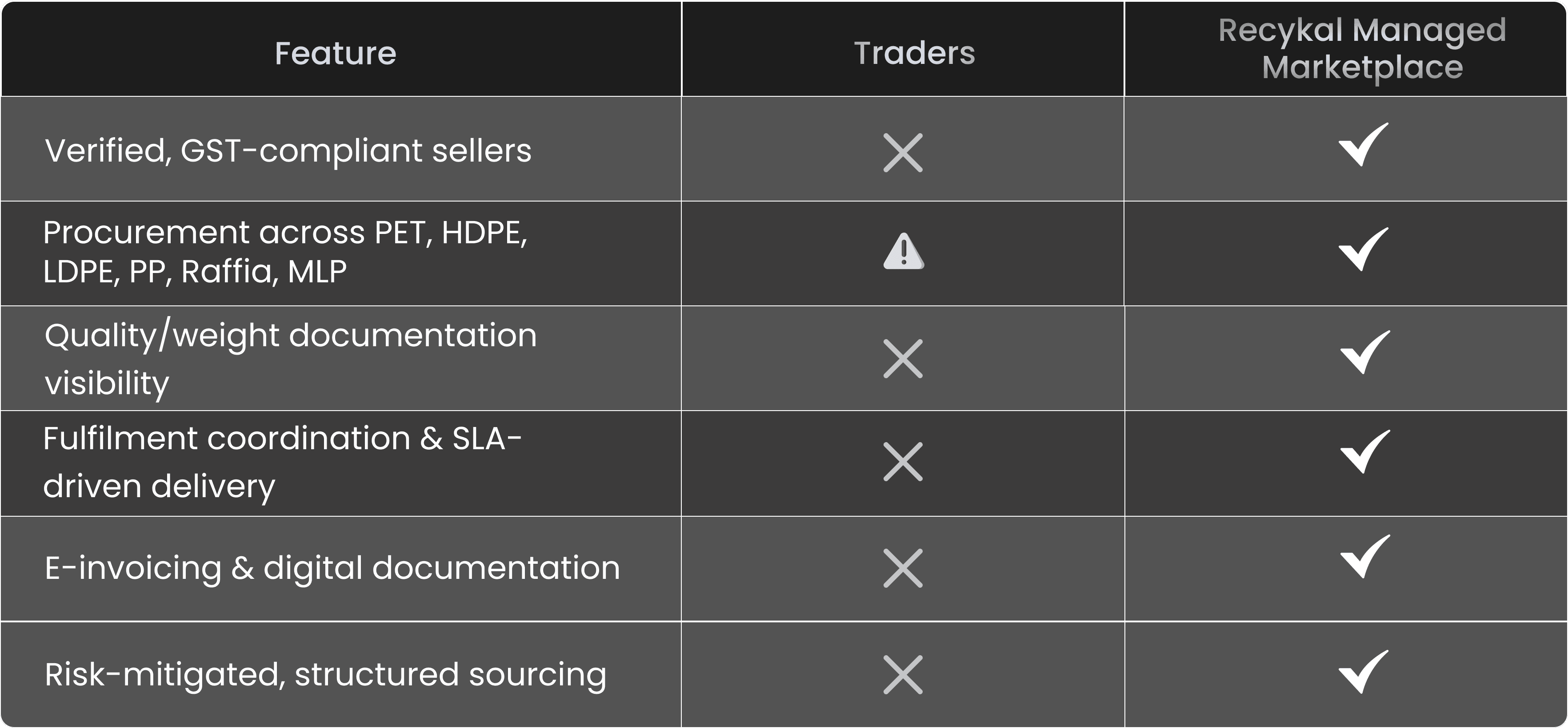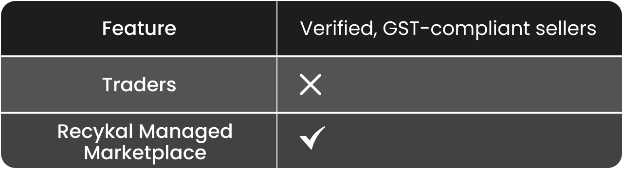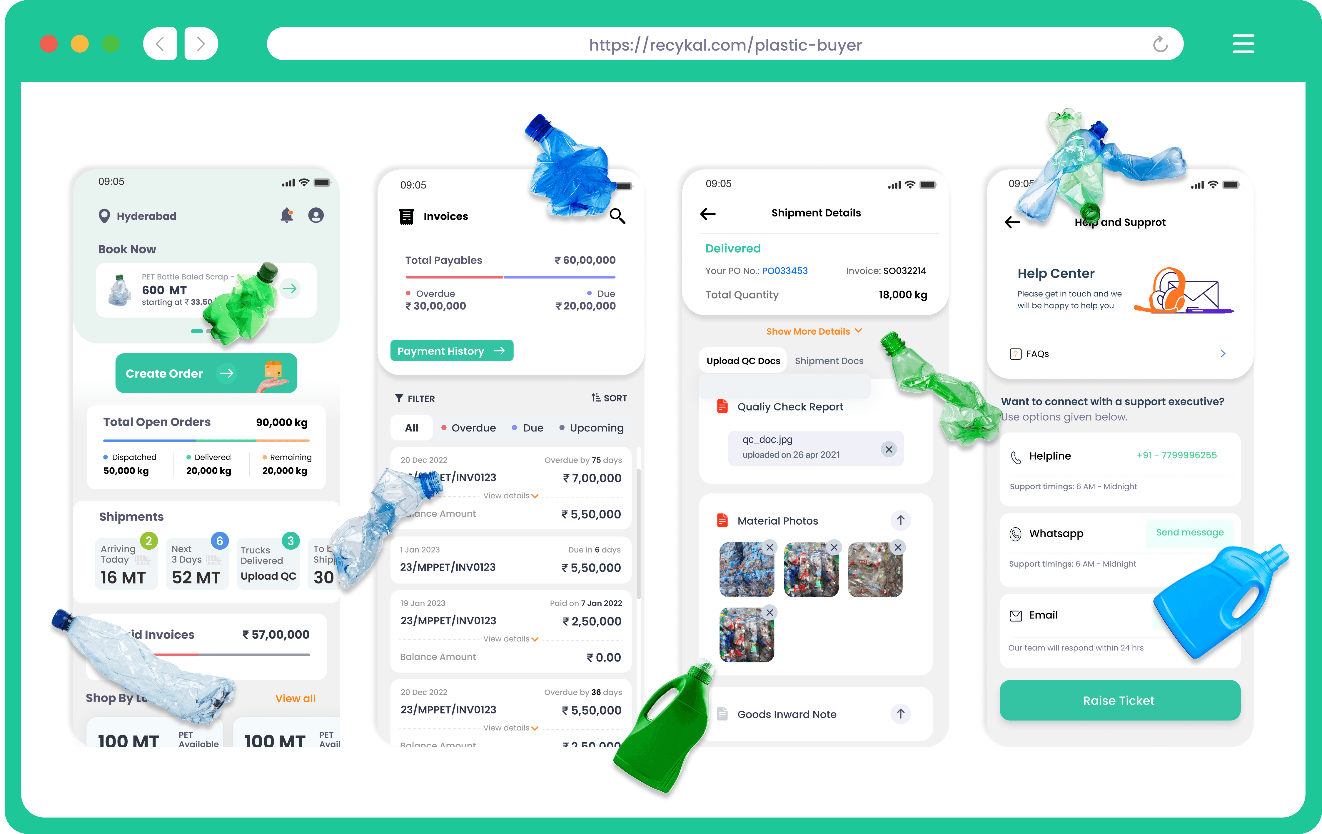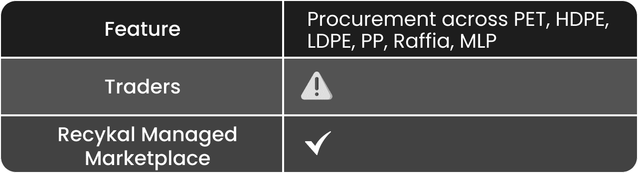 Recykal’s managed marketplace enables recyclers to procure PET and non-PET plastic bales from GST-compliant, verified sellers across India.