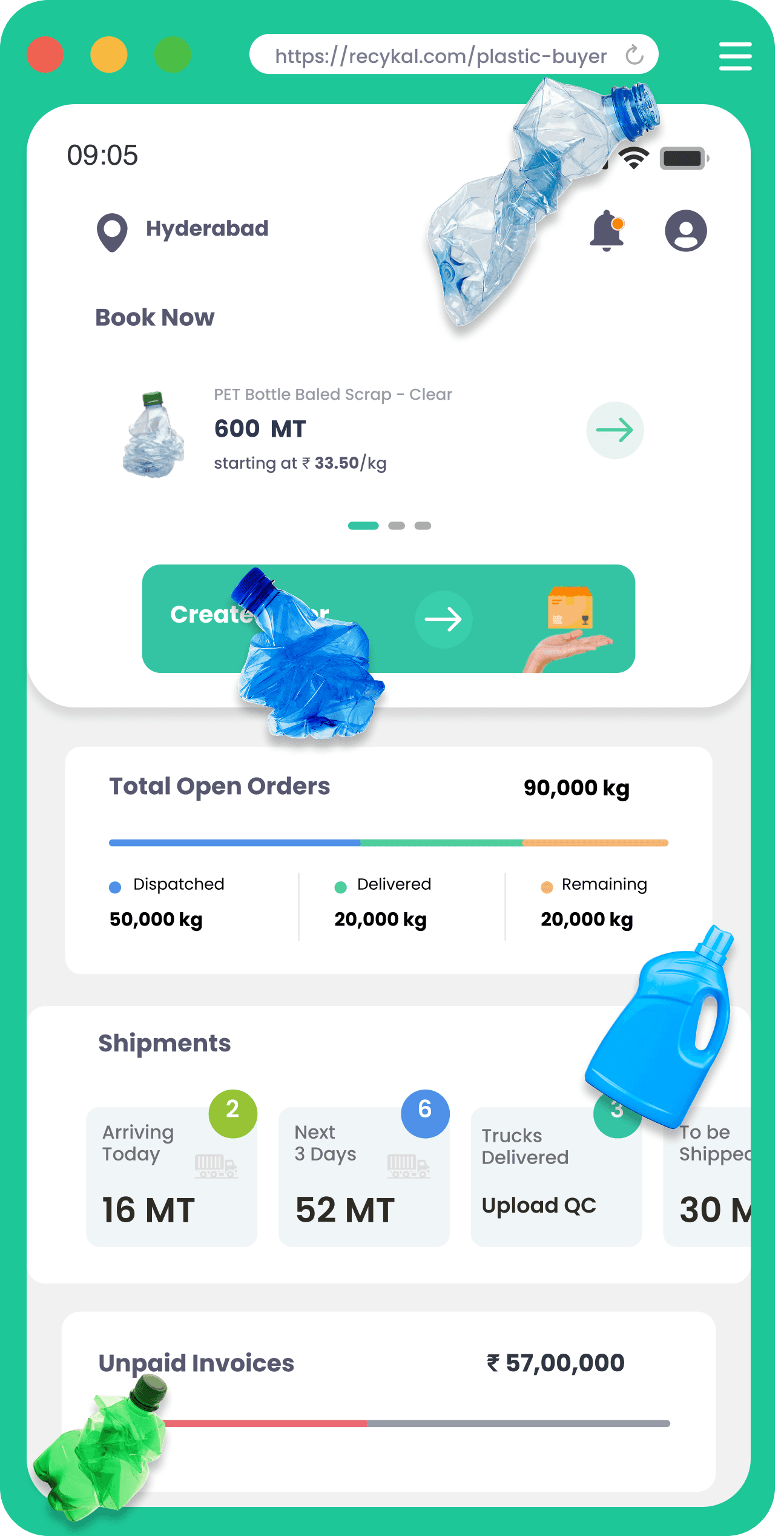 A managed B2B marketplace for recyclers to procure PET and non-PET plastic bales from GST-compliant, verified sellers across India, with consistent supply, SLA-based logistics, and digital documentation.