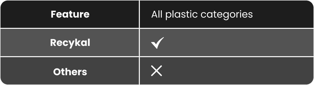 Recykal’s EPR Plastic solution supports compliance across all CPCB-defined plastic categories: 1. Category I: Rigid plastic packaging 2. Category II: Flexible plastic packaging 3. Category III: Multi-layered plastic packaging (MLP) 4. Category IV: Compostable plastic