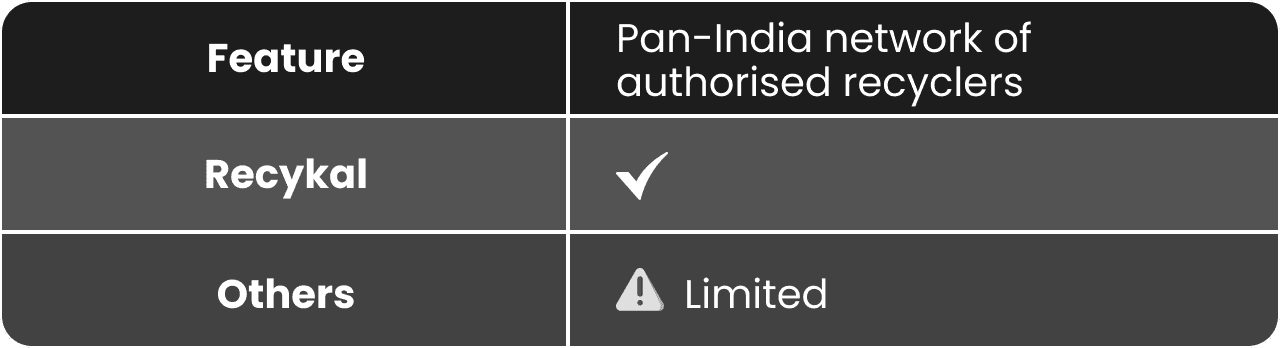 Yes. Recykal only partners with CPCB-authorised recyclers. All credits are validated, audit-traceable, and registered on the official portal.