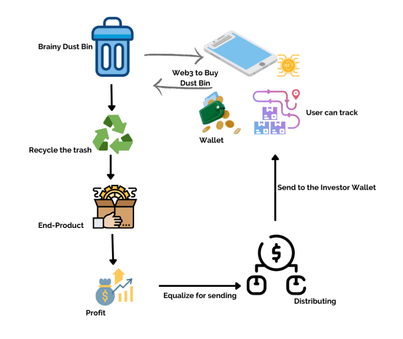 Issues in the current waste management system stem from a lack of reform, particularly in data processing. As a result of this lack of reform, there has been a consistent rise in environmental pollution, resource wastage, and financial loss. The traditional manual process of waste management has become outdated, leading to inaccurate data collection or data being provided at an insufficient rate. Blockchain can change how waste is handled by individuals and businesses by providing records on waste from its origin to its dispersal. Each waste transfer, generation, and handling event can be managed and recorded by the blockchain system and provided to appropriate parties who are stakeholders in the waste management process. A common illegal practice among waste management companies is fraud and non-compliance with waste regulations. Companies often illegally dispose of waste and use other unethical means to cut costs. With blockchain’s irreversible ledger, such illegal practices can be addressed effectively due to the monitoring system that cannot be influenced or changed by any separate body or person. This computerized ledger ensures that companies follow the right protocols in all aspects of waste disposal. Another innovative way that blockchain can improve waste management is through the introduction of a special token to encourage proper waste management practices. Due to monitoring already placed on dustbins and other disposal units, the system can also reward individuals or companies that dispose of and recycle their waste in a preferred manner with tokens that entitle them to benefits, as shown in image A below.