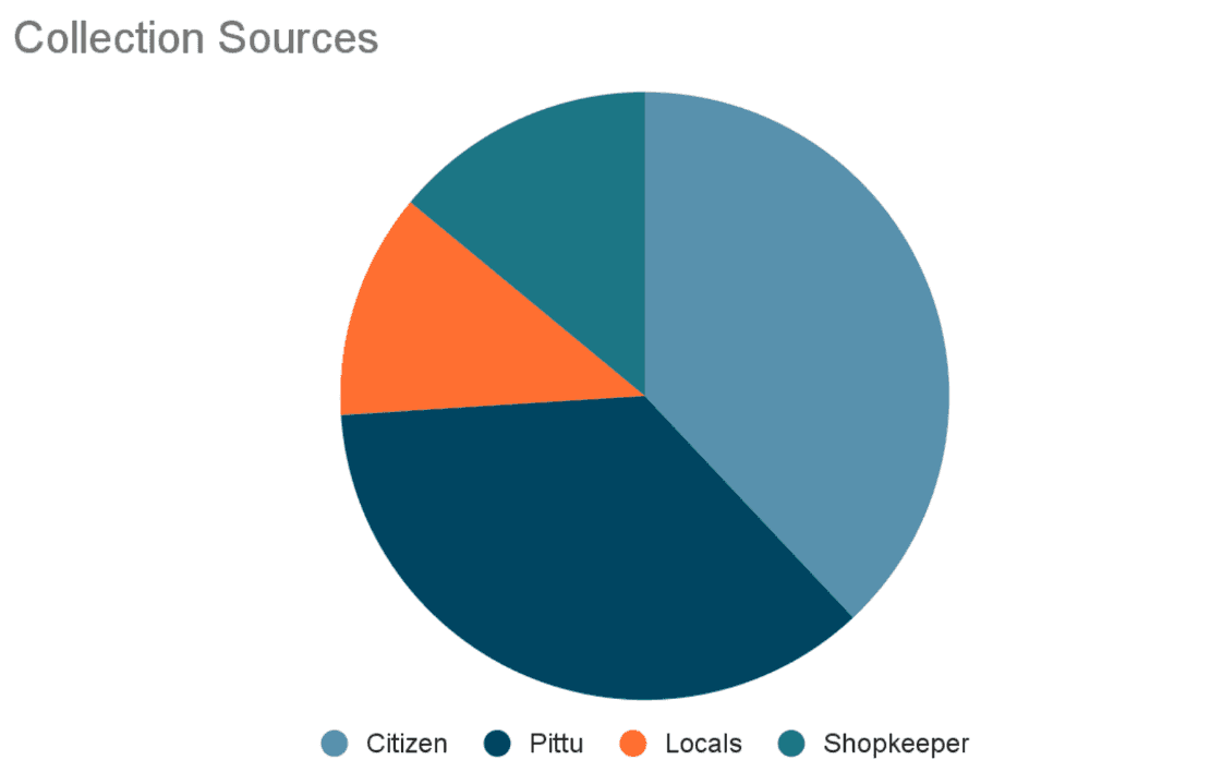 The collection activity carried by various stakeholders have been detailed below. We can observe that the citizens, Pittuwalas, shopkeepers and locals helped to jointly collect.
