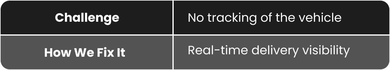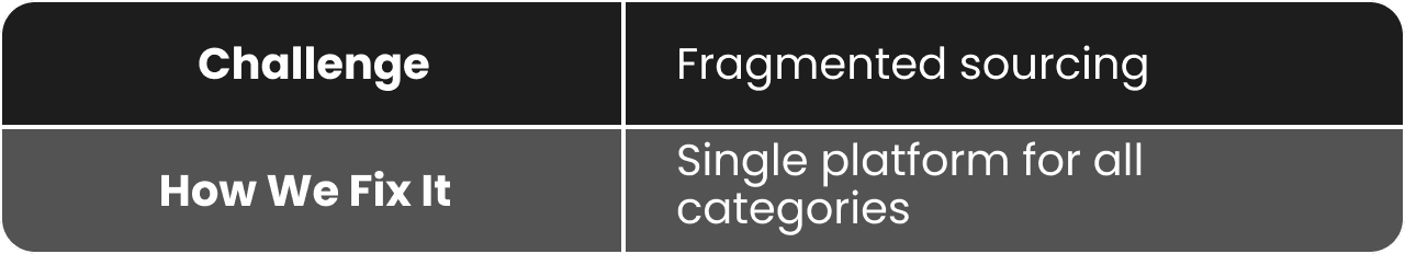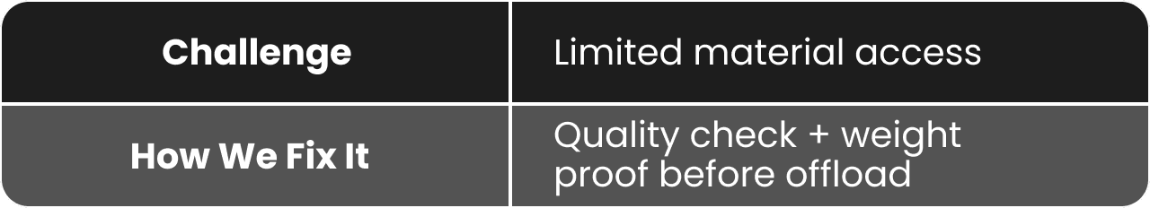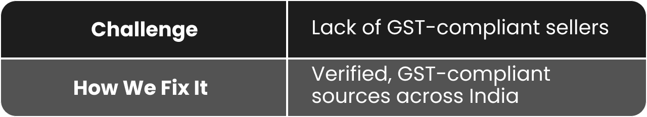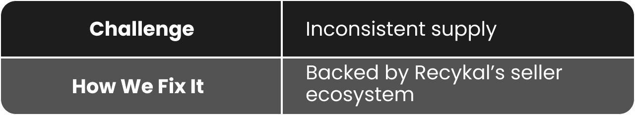 Lack of compliant sellers, no vehicle tracking, inconsistent supply, fragmented sourcing, and no quality proof.